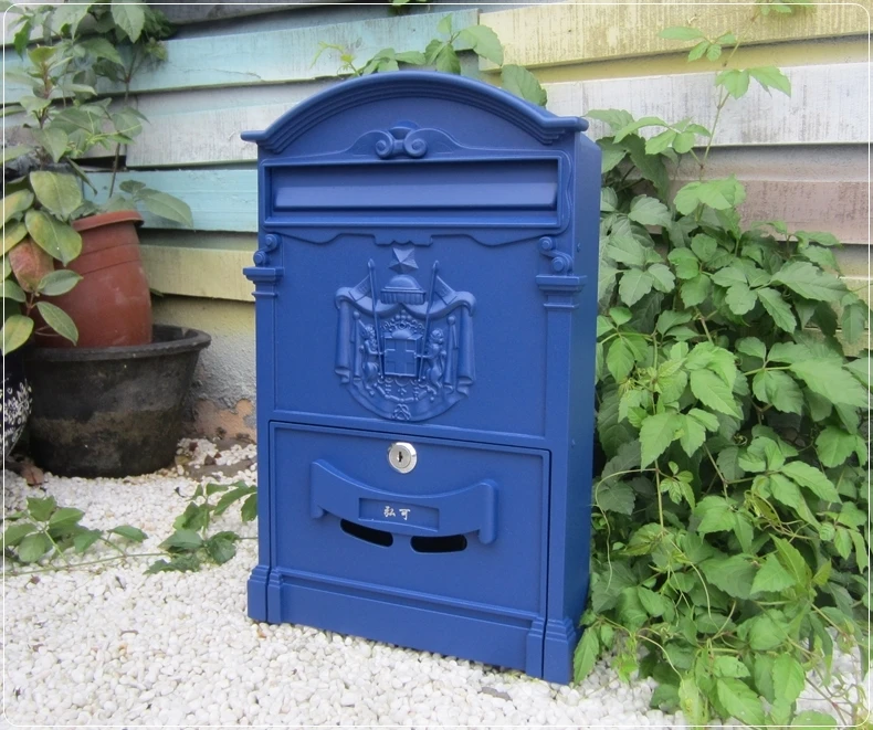 Lockable Secure Mail Letter Post Box Vintage Metal Mail Box Garden Ornament Retro wall-mounted Mail