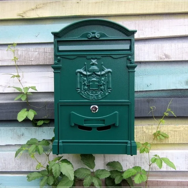 BEST SELLER Lockable Secure Mail Letter Post Box Vintage Metal Mail Box Garden Ornament Retro wall-mounted Mail
