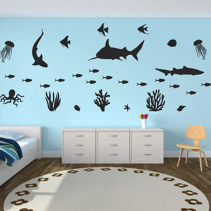 BEST QUALITY Under the Sea Theme Wall Decal Shark Set Wall Vinyl Stickers Home Bathroom Decoration Fish Sea Anim