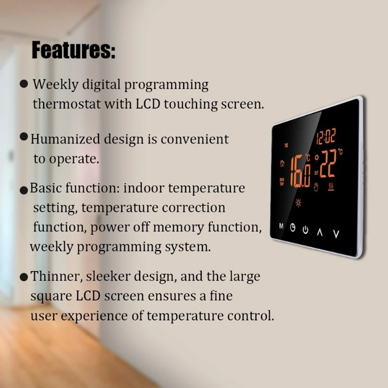 Electric Floor Heating Room Press Screen Thermostat Warm Floor Heating System Thermoregulator 220V