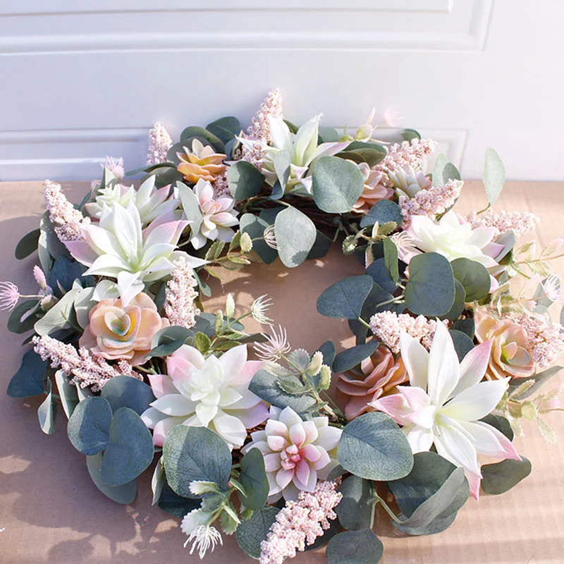 HIGH QUALITY Artificial Wreath Door Trim Ornament Hanging Succulent Fake Flower Garland for Home Garden Christma