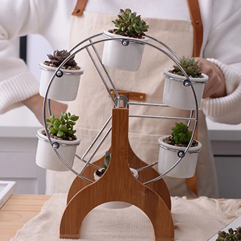 1 Set Ferris Wheel Flowerpots White Ceramic Garden Decor Planters Succulent Planter Pots 6 Mini Bon
