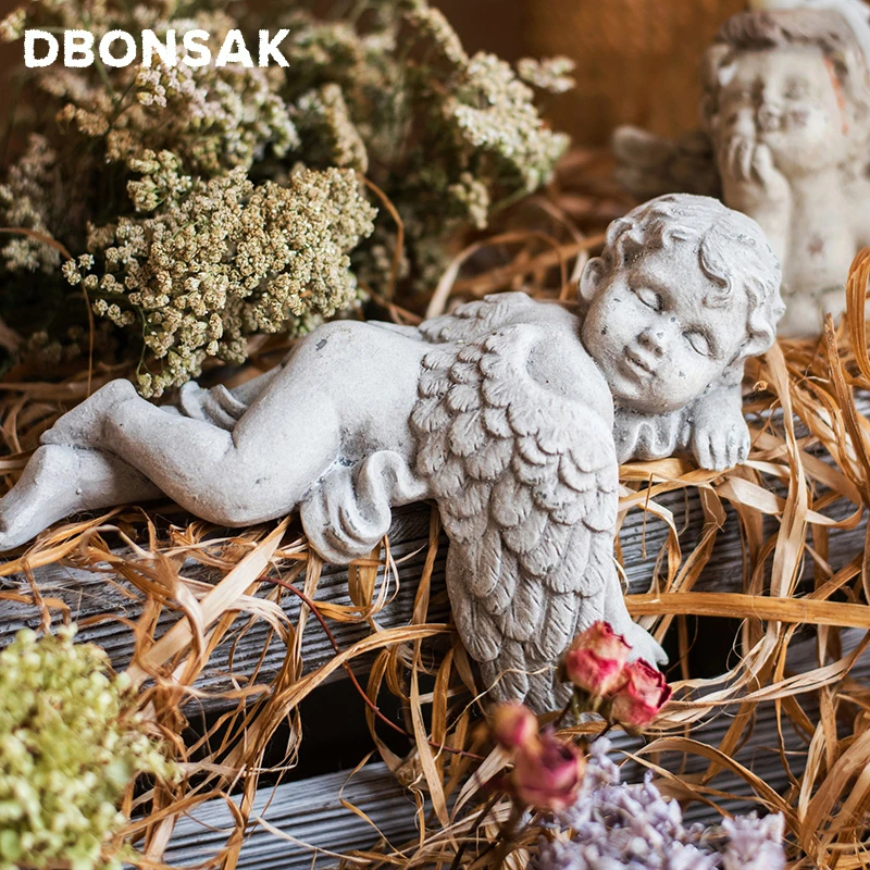 Vintage Angel Sculpture Statue Sleeping Angel Decoration Resin Crafts Garden Courtyard Villa Wall D